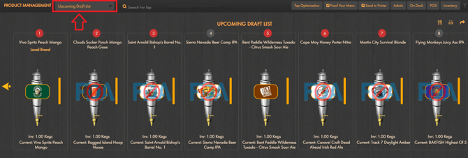The Upcoming draft list is where the future lineup of beers is initiated and for those that apply, print menus