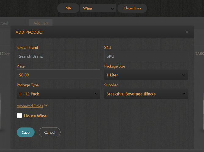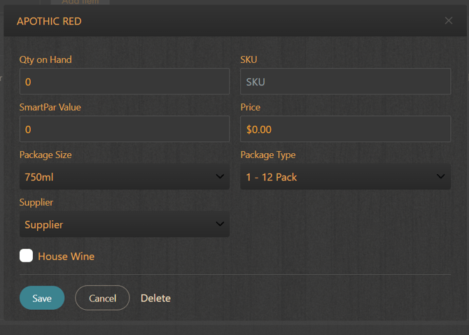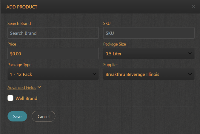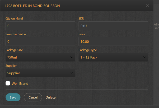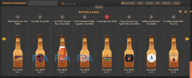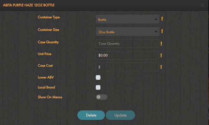 Click on a bottle or can product to bring up its product details. Here you can edit: