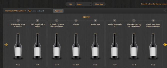 Select from all alcohol categories from the SmartBar Dashboard - Product Category Dropdown